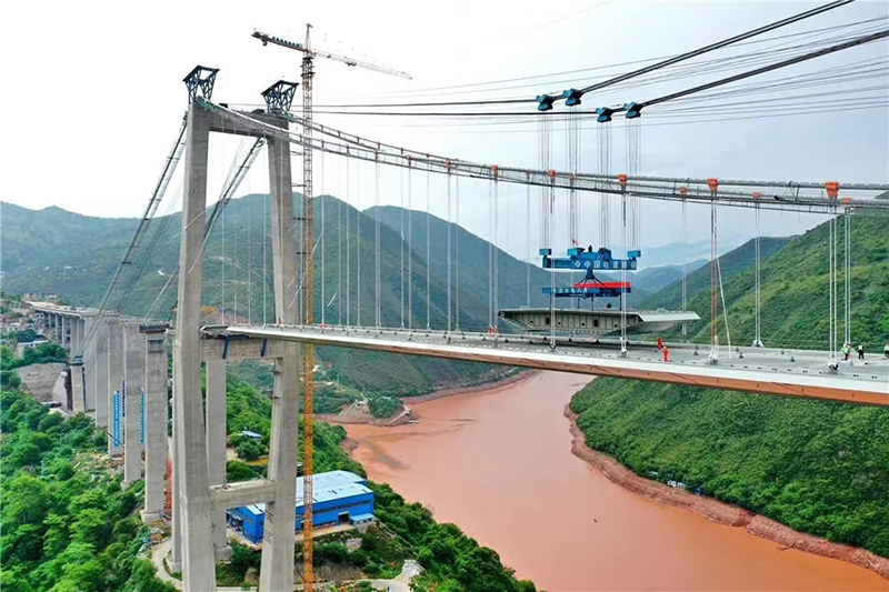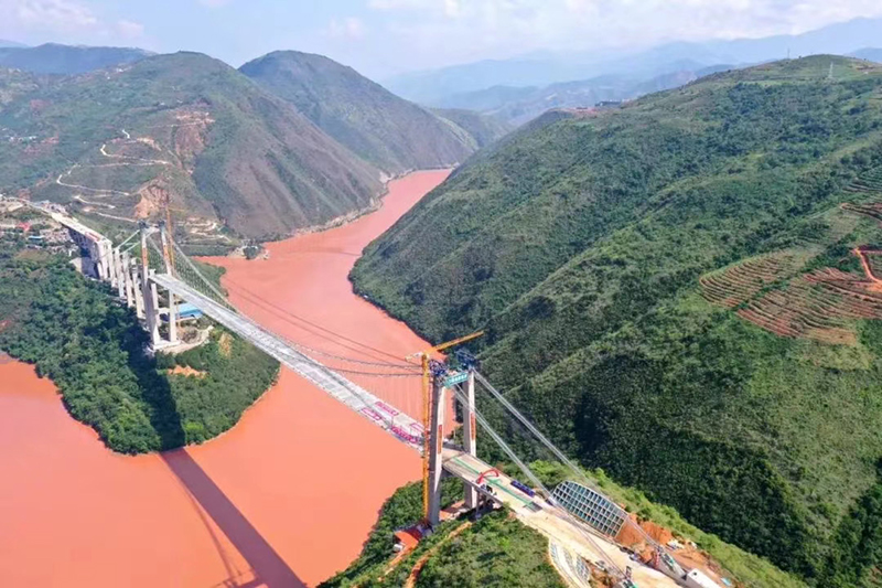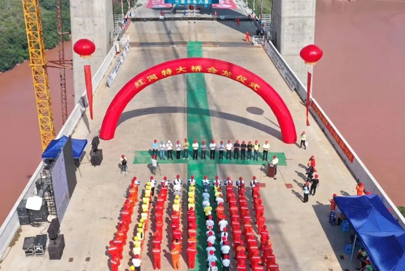 紅河全長(zhǎng)1280公里,是一條跨越中國(guó)和越南的國(guó)際河流。紅河特大橋?yàn)榭缭郊t河南沙水庫(kù)而建,是我國(guó)首座跨越紅河的高速公路懸索特大橋,大橋全長(zhǎng)1366米,其中建水岸引橋長(zhǎng)580米,元陽(yáng)岸引橋長(zhǎng)80米,主跨長(zhǎng)700米。庫(kù)區(qū)水面距橋面高達(dá)184米,建水側(cè)主塔高181.29米,元陽(yáng)側(cè)主塔高122.5米。2020年9月5日,紅河特大橋主跨成功合龍,標(biāo)志著全線工程建設(shè)取得重大節(jié)點(diǎn)性勝利。